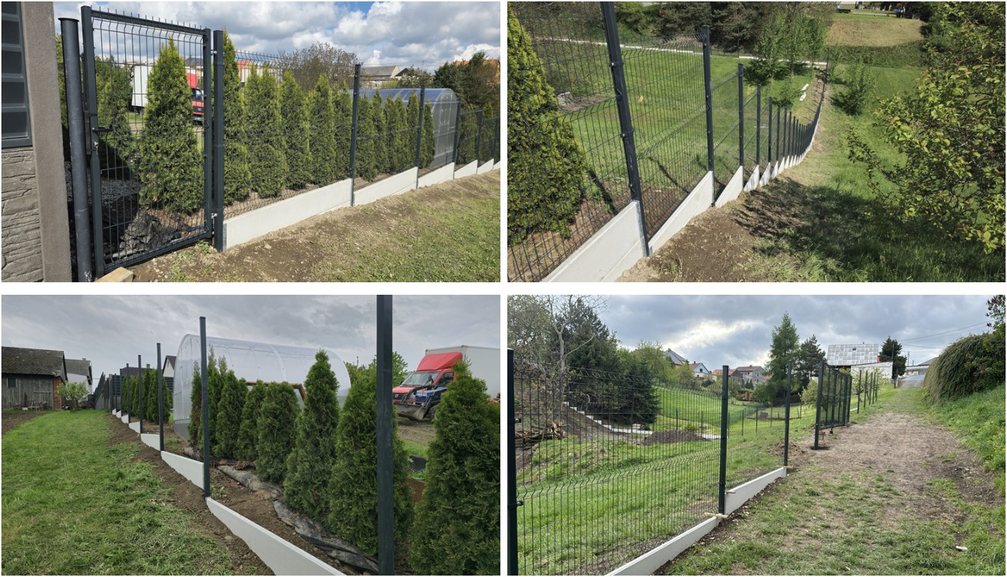 Použity byly 3D panely + zahradní branka a brána s 3D panely + podhrabové desky.