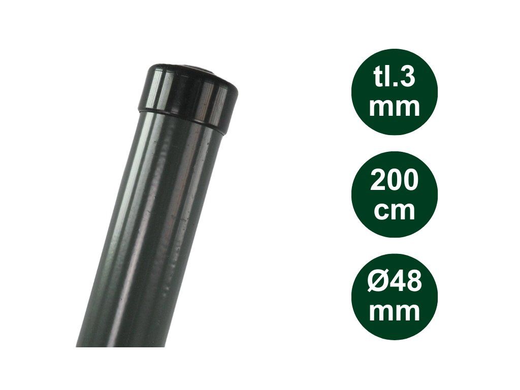 Plotový sloupek kulatý, zelený, výška 200 cm, Ø sloupku 48 mm, síla stěny 3,0 mm | EXCLUSIVE